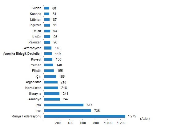 Ülke uyruklarına göre en çok konut satışı Rusya Federasyonu vatandaşlarına yapıldı